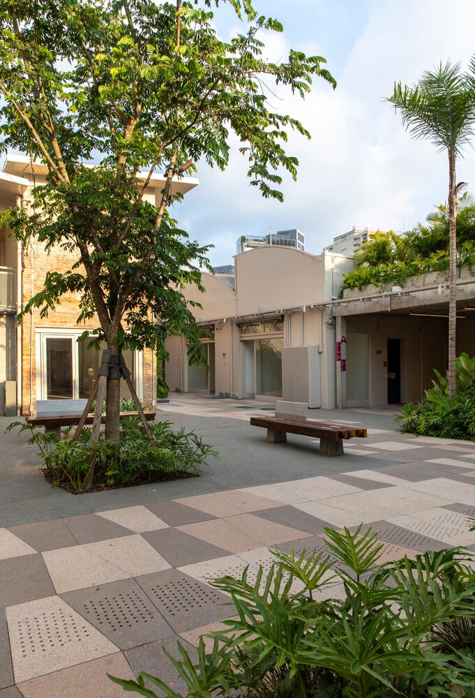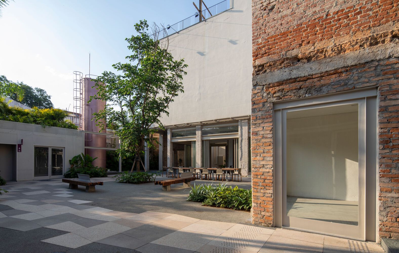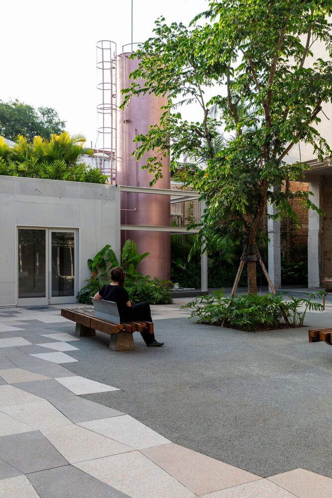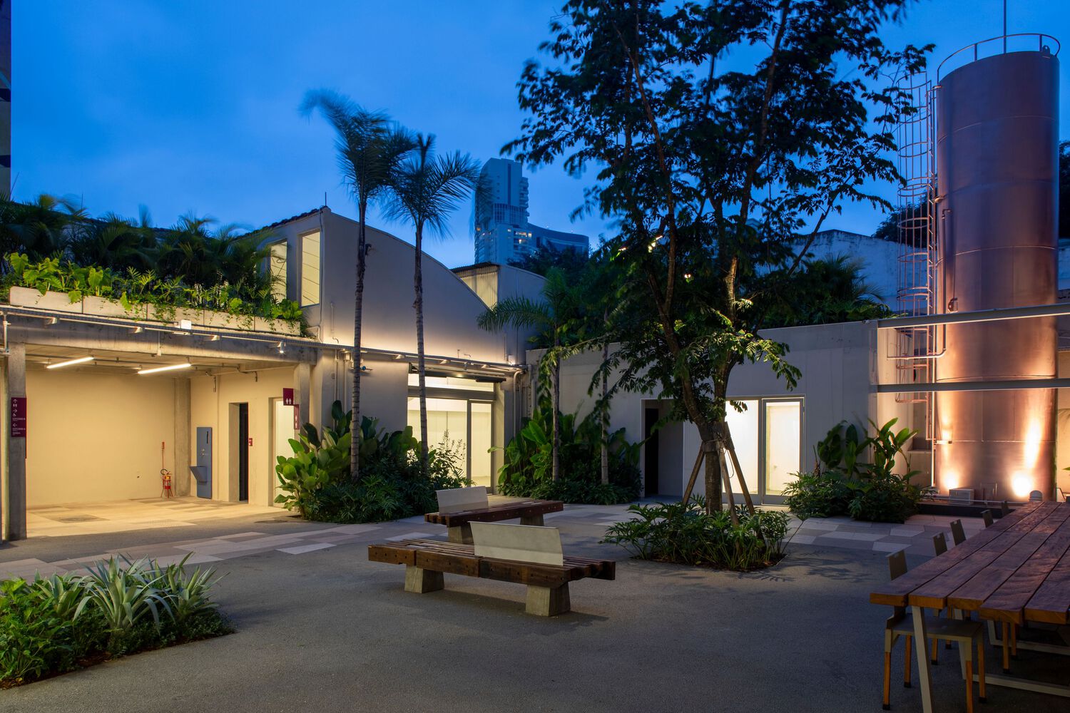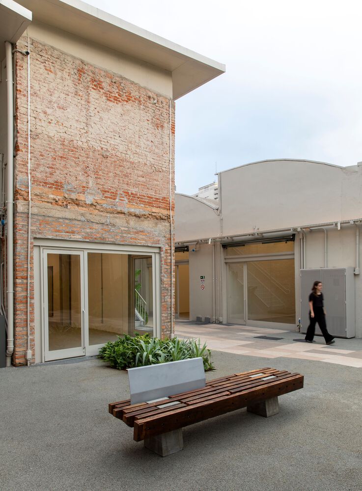 Sustentabilidade: novo uso para antigas construções e materiais. A sustentabilidade do empreendimento está na capacidade de uso eficiente dos recursos, preservando ao máximo as construções existentes e reduzindo descartes de obra. Com a gestão dos resíduos das demolições, 20 metros cúbicos das madeiras originais dos telhados foram reaproveitados na fabricação do mobiliário urbano que ocupa as áreas comuns. Além disso, as telhas cerâmicas, após serem demolidas, foram integradas ao piso do projeto.