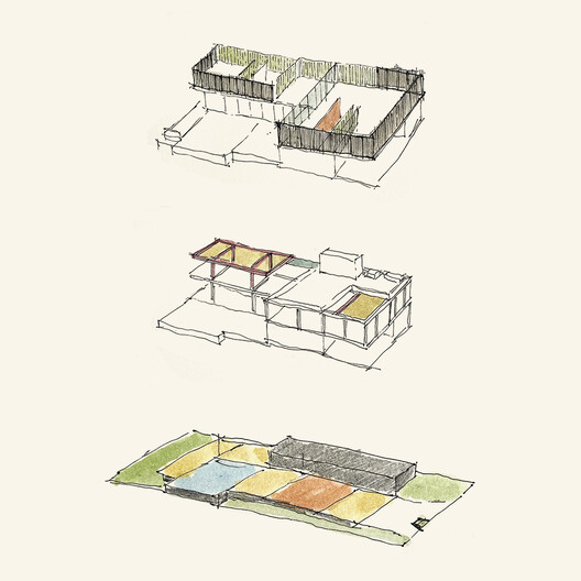 Descrição enviada pela equipe de projeto. O projeto desta residência foi desenvolvido em duas etapas distintas e complementares. A construção começou com base no projeto original, mas, devido a circunstâncias específicas geradas pela pandemia de COVID-19, foi adquirida por uma nova família, que realizou as intervenções necessárias para atender às suas demandas.
