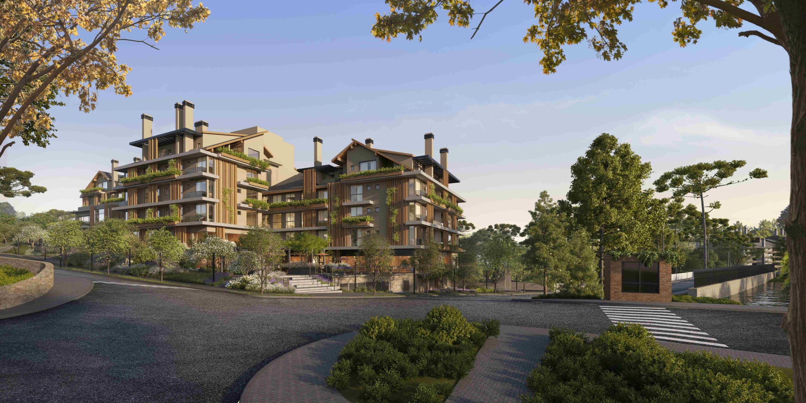Assinado pelas empresas familiares Bronstrup e Joal Teitelbaum, o Downtown Canela foi concebido como um complexo urbano completo, integrando moradia, lazer, comércio e serviços. São 73 apartamentos distribuídos em diversas tipologias — de um a três dormitórios — com áreas privativas entre 46m² e 119m², todos com churrasqueira, esperas para lareira, rebaixo em gesso e piso em porcelanato. O empreendimento ainda conta com 1.800 m² de área bruta locável (ABL) para lojas e serviços no térreo, incluindo um open mall com lojas selecionadas e um moderno food hall.