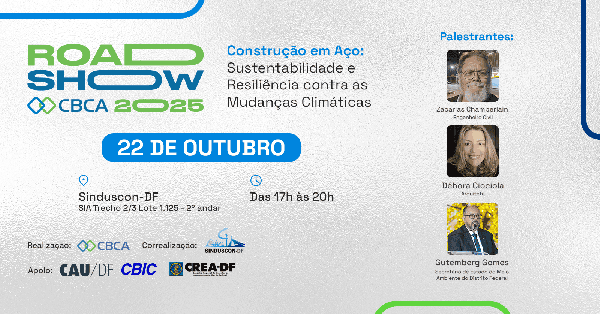 O Roadshow CBCA é um circuito nacional de palestras sobre a construção em aço que ocorre em diversas capitais brasileiras, com o objetivo de apresentar soluções tecnológicas de aço em obras.