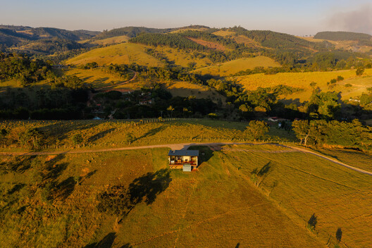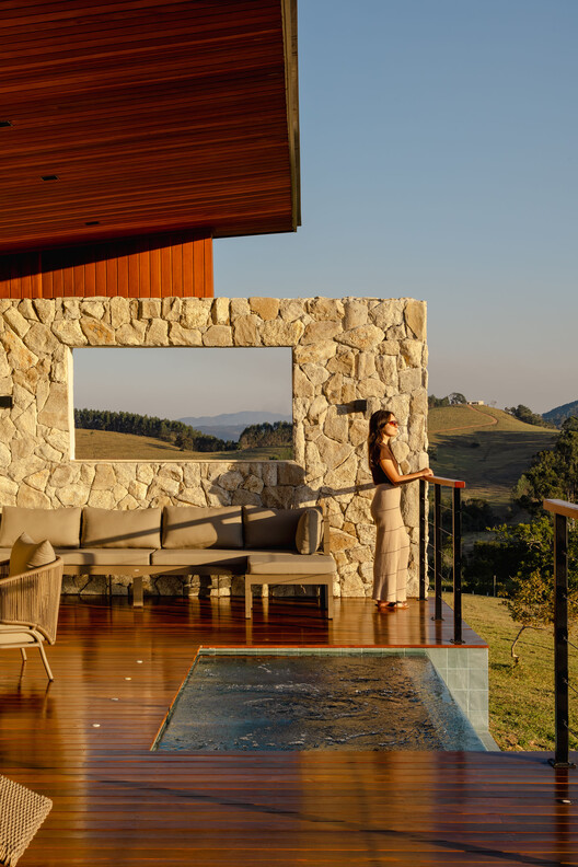 Implantada em um terreno em declive sobre um deck suspenso para reduzir o impacto no solo e criar sensação de leveza, ao mesmo tempo em que amplia a relação visual com o ambiente natural, a edificação se posiciona estrategicamente para enquadrar a paisagem, de onde vem o seu nome - cada abertura se torna uma obra de arte.