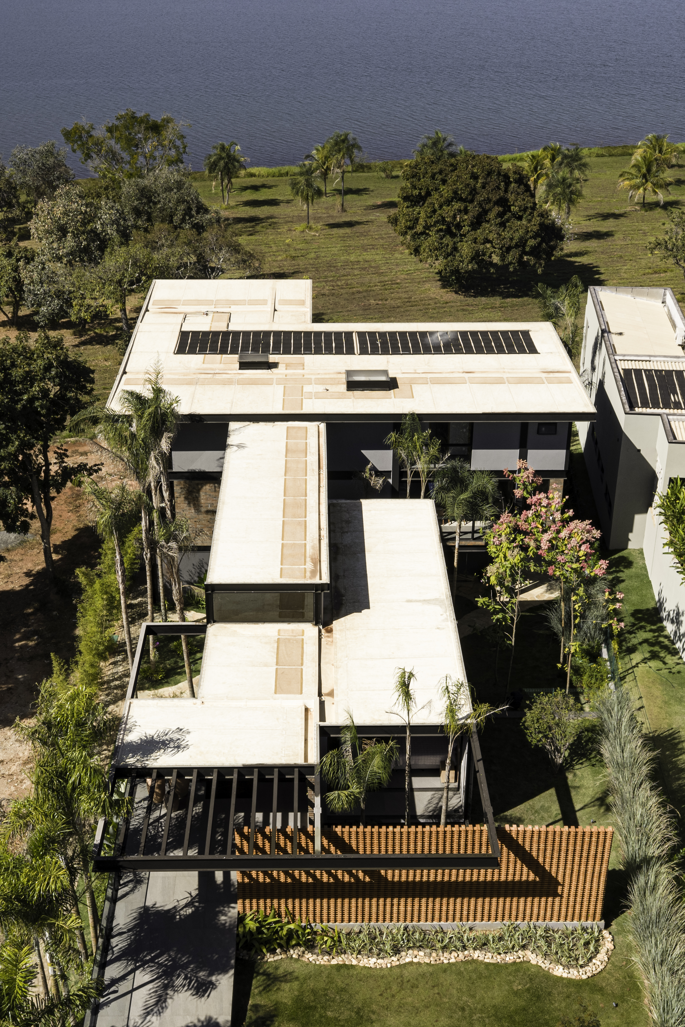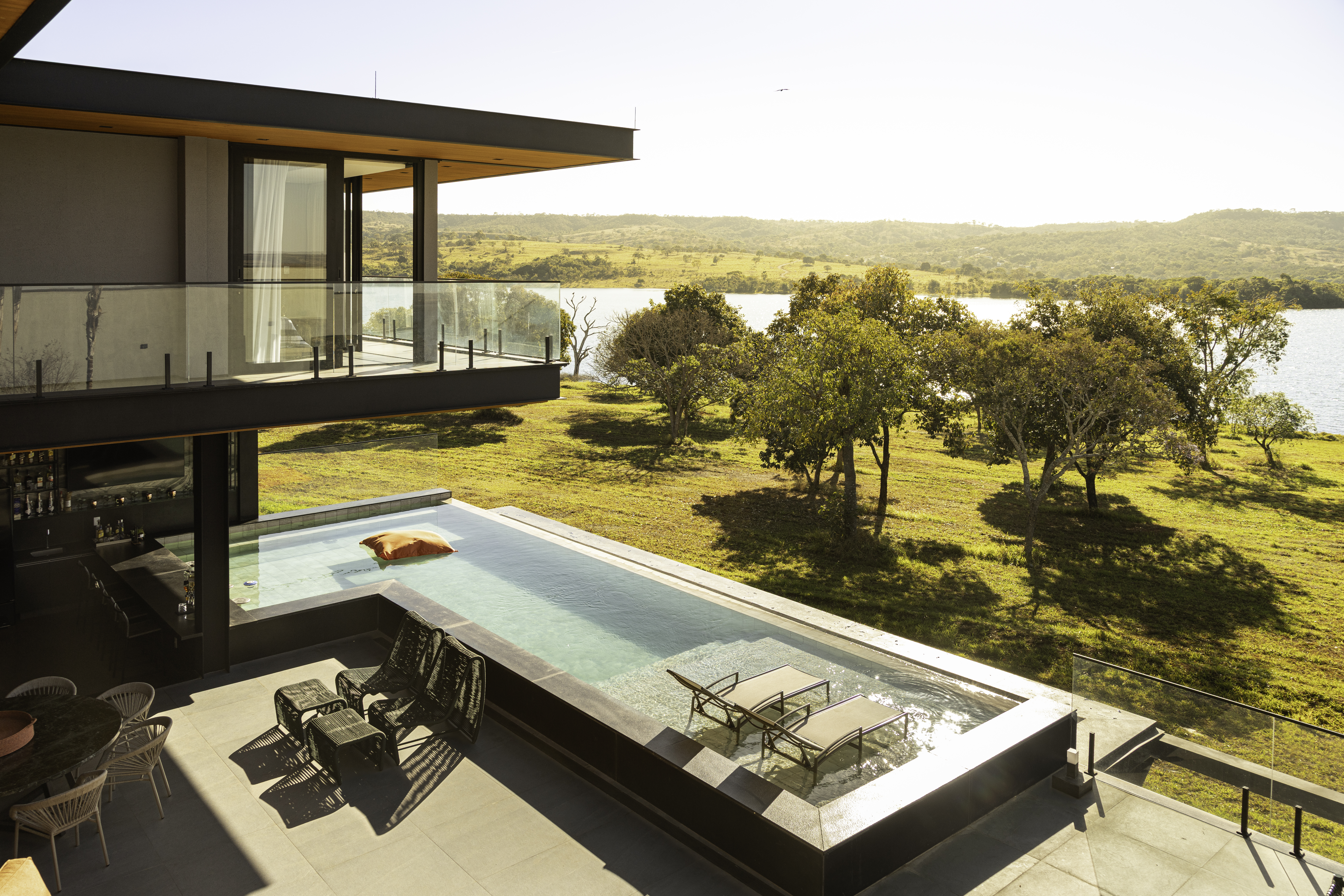 Há uma humanidade rara na Casa do Lago Corumbá IV, em Alexânia (GO). Não pela presença, mas pela ausência: o modo como ela deixa o vento passar, como permite que o horizonte invada seus espaços, como suspende o peso da matéria para que a luz ocupe o que antes era gravidade. Assinado pelo escritório Dayala e Rafael Arquitetos Associados, o projeto repousa sobre uma engenharia de mínima intervenção e máxima expressão.