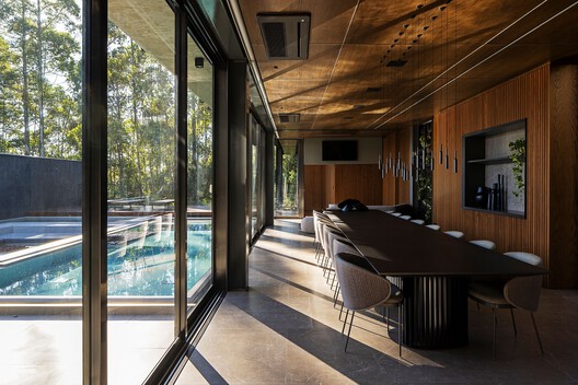 A distinção entre os espaços servidos e servidores é clara e foi proposta de forma a racionalizar a ocupação, promovendo vazios que potencializam a relação entre os ambientes internos e externos. A estrutura em perfis metálicos de aço permitiu a criação de grandes vãos, livre de compartimentações e com um número reduzido de pontos de apoio.