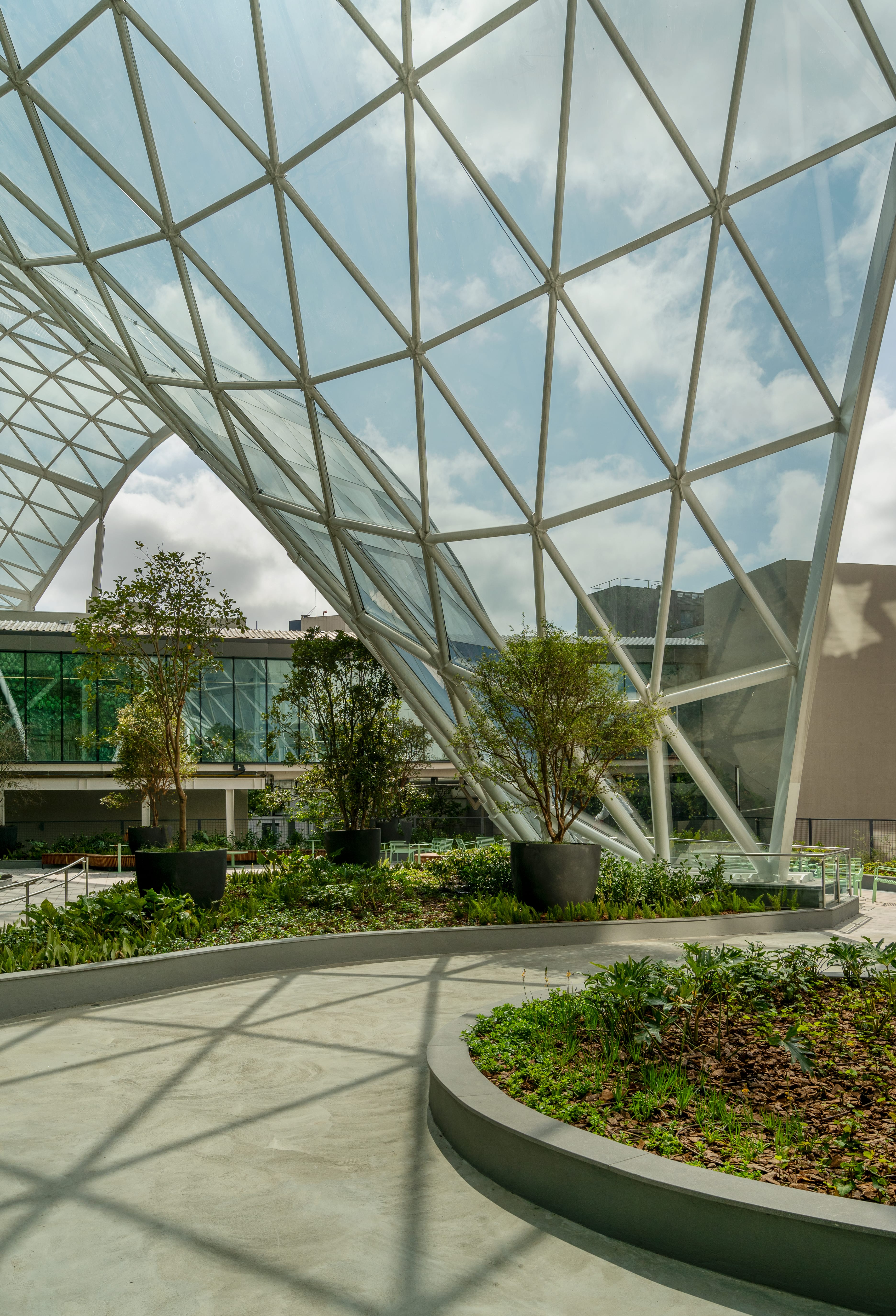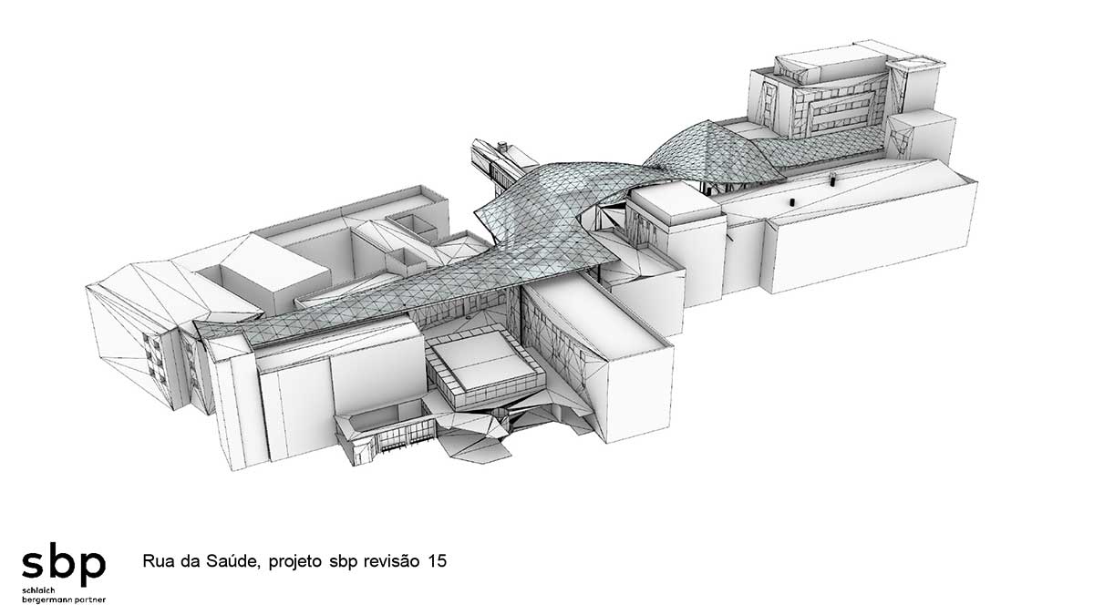 Após vencer a concorrência, a sbp precisou reformular o conceito arquitetônico e estrutural da cobertura. “Nosso principal desafio foi tornar a estrutura do tipo gridshell viável para a cobertura da Rua da Saúde, reduzindo o número de apoios para minimizar interferências com a infraestrutura hospitalar,” conta Miriam.
